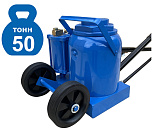 Пневмогидравлический. г/п 50т. Подхват под раму и мосты грузовых автомобилей и спецтехники. Увеличенный диаметр металлических колес домкрата, позволяет легко транспортировать его по не ровным поверхностям. Можно поднимать автомобили для ремонта ВМЕСТЕ С ГРУЗОМ. Высота подъема 265-425мм. Ход поршня 160 мм.