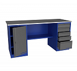 Двухтумбовый. Допустимая нагрузка на столешницу 1000 кг. Опорные элементы выполнены сварными из холоднокатаной стали. Для выполнения сборочных, ремонтных, слесарных, монтажных и других видов работ на производстве, в сервисных центрах, мастерских, гаражах, а также для обучения технологии в учебных заведениях. Комплектуется полкой-стенкой, расположенной под столешницей для удобного размещения габаритного инструмента и оснастки. Размеры верстака: 855x1796x696 мм. Вес: 128 кг. Поставляется в 4 комплектациях на выбор.