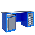 Верстак металлический двухтумбовый 1 тумба - 5 ящиков, 1 тумба с ящиками и дверью, ц. замок, полка, оцинк. столешн. h=24 мм (фанера+оцинкованный металл 1мм). Размеры (ВхШхГ) 870х1800х700 мм. Вес 115 кг. Нагрузка на столешницу 300кг.