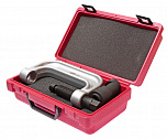 Для снятия/установки запрессованных элементов: шаровых опор, карданного шарнира с крестовиной, анкерных пальцев барабанных тормозов и других аналогичных работ. Размер струбцины: 165 мм. Размер насадок: 69 мм, 56 мм, 45 мм.