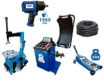 Комплект: шиномонтажный станок TS-21 для дисков: внешний 11÷20” + пистолет с манометром для подкачки шин + монтажка + пластиковые накладки на зажимные кулачки + регулятор давления с влагоотделителем и манометром. + TS-500 балансировочный станок с автозапуском, для колес легковых автомобилей и легких грузовиков, диаметр диска с резиной до 760 мм. размеры диска: ширина 3"–9” (76-228 мм), диаметр диска 10"–21” (254-533 мм). + кожух защитный + клещи + кронциркуль + быстрозажимная гайка + набор конусов + подкатной домкрат г/п 3,0т. 130-465мм. + ударный пневмогайковерт 1/2" крутящий момент 745Нм + шланг кислородный 9мм 20Атм. 10м