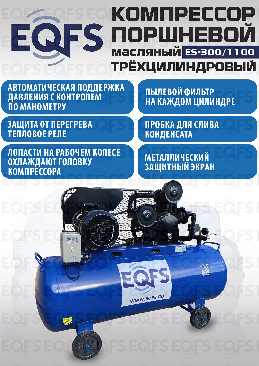Технические особенности компрессор поршневой ES-300/1100 (5 кВт):