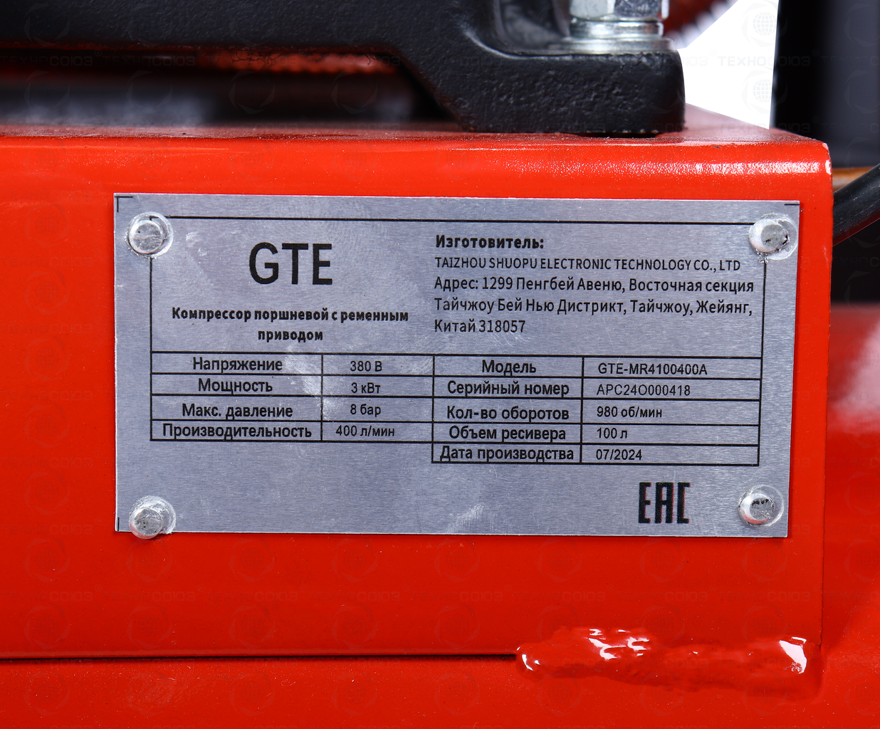 GTE-MR4100400A Компрессор поршневой с ременным приводом 380В