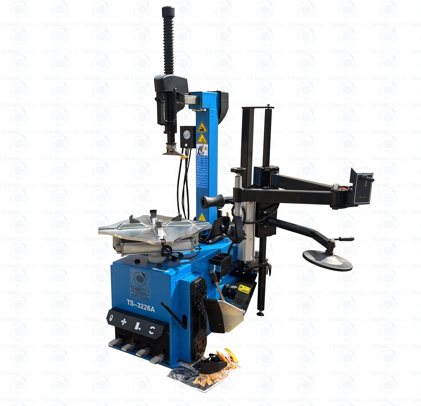 Автоматического шиномонтажного станка TS-3226А для колес легковых автомобилей, легких грузовиков, не больших автобусов и коммерческой техники. Для дисков: 11÷24”. В комплекте: полноценная 3-я рука для работы с жесткой и низкопрофильной резиной RUNFLAT. + встроенный бустер 24 литра (взрывная подкачка) + пистолет для подкачки шин + монтажка + регулятор давления с влагоотделителем и манометром.