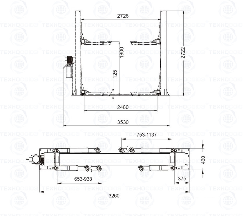 T-3.5 Подъемник 2-х стоечный г/п 3,5т. электрогидравлический