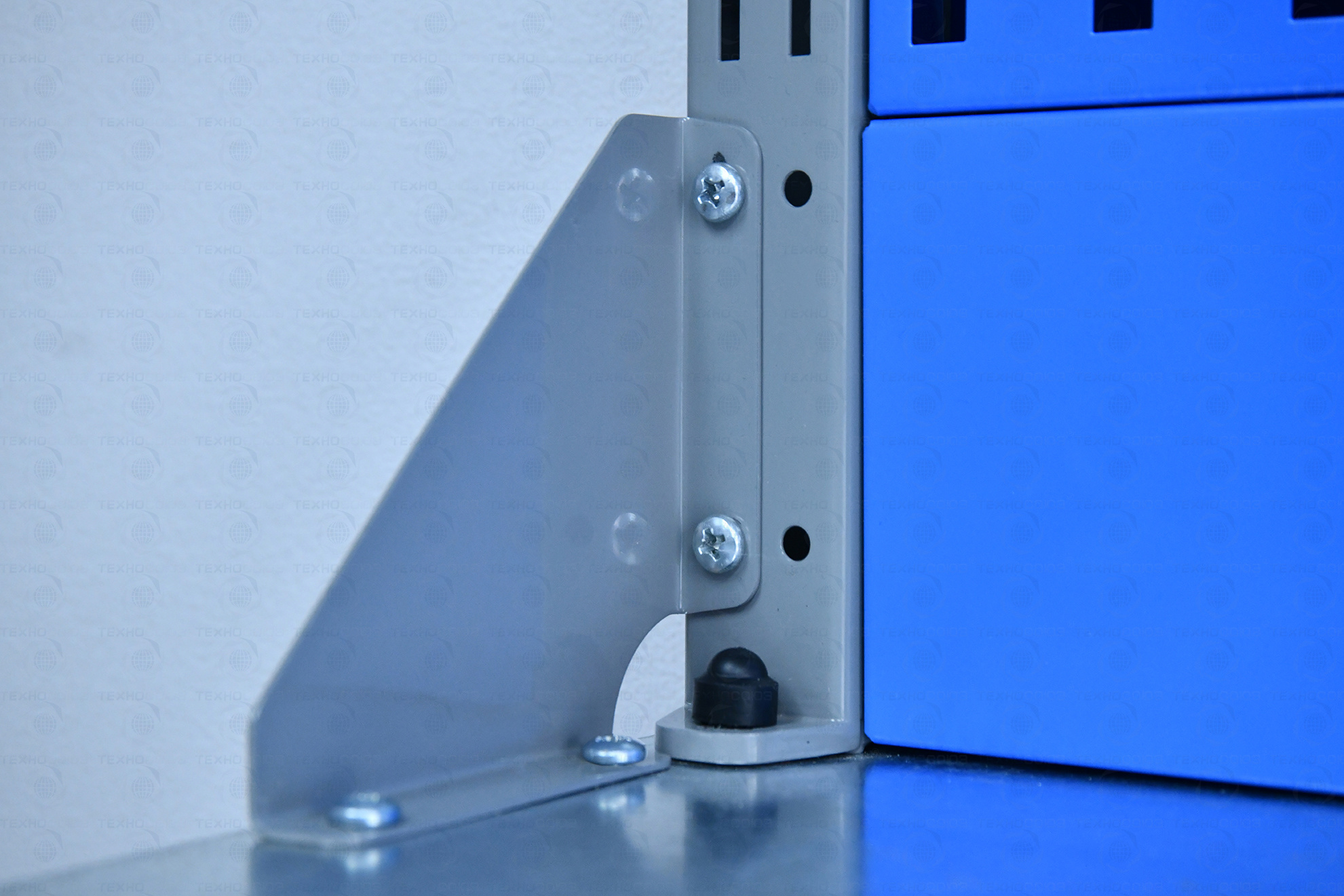 Верстак комплектуется полкой-стенкой, расположенной под столешницей для удобного размещения габаритного инструмента и оснастки.